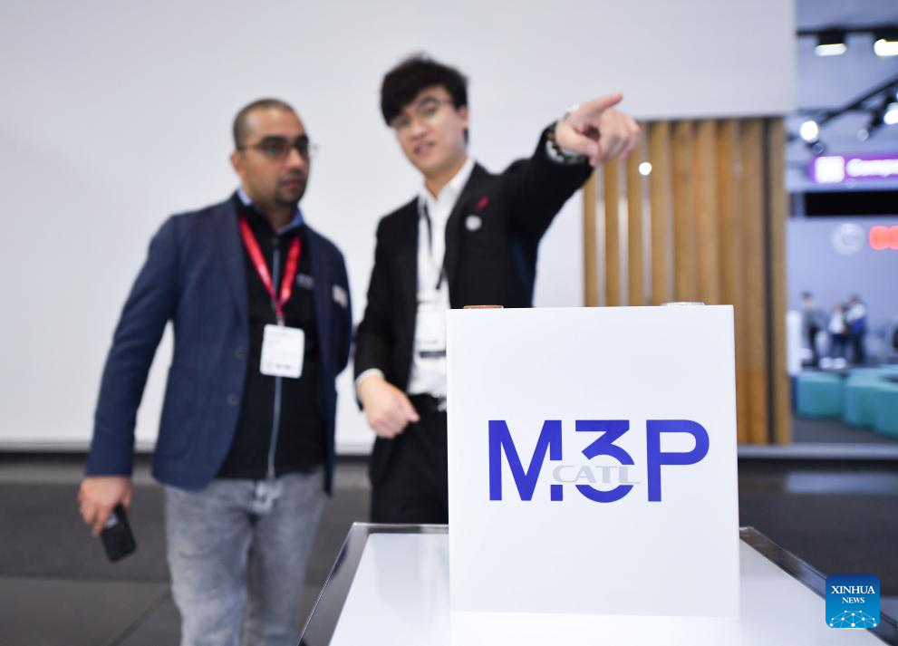 A man visits the booth of Chinese company CATL during the media preview of the International Motor Show (IAA) Transportation 2024 in Hannover, Germany, Sept. 16, 2024. The IAA Transportation 2024 opened Tuesday in Hannover, Germany, aiming to advance climate neutrality in logistics and transportation through innovative transport systems.