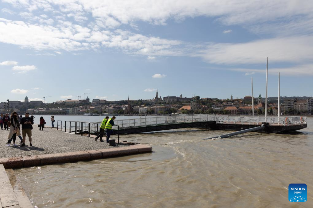 People observe the water level of the Danube River in Budapest, Hungary, Sept. 17, 2024. (Photo by Attila Volgyi/Xinhua)