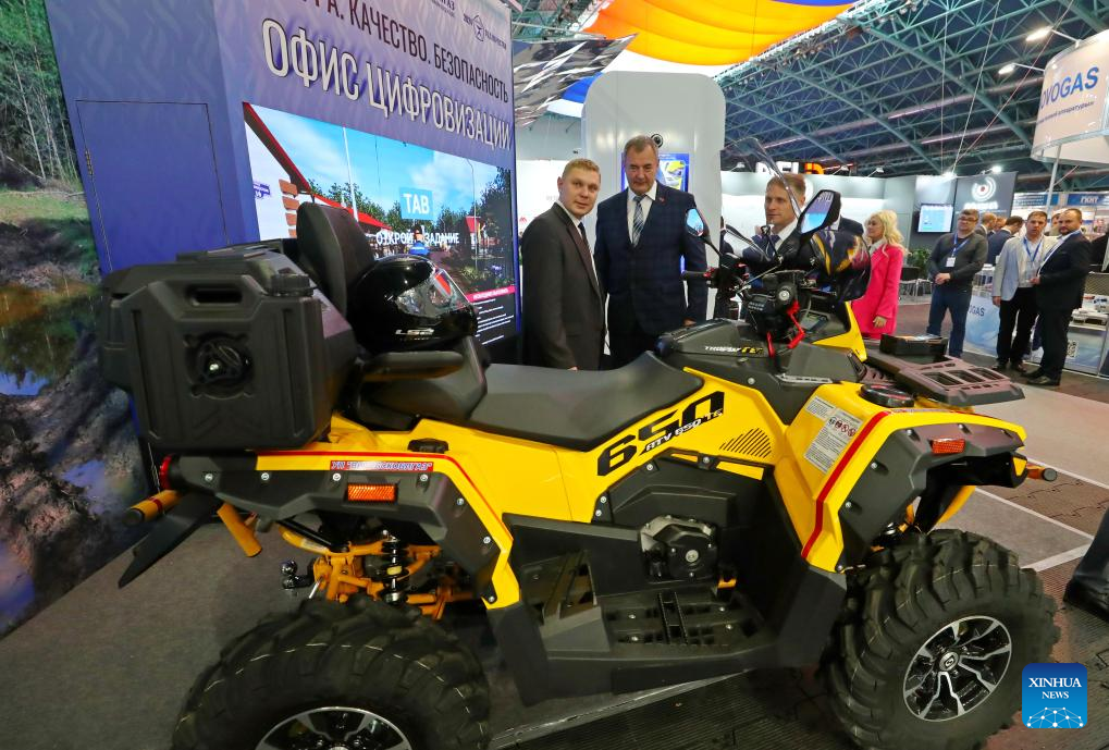 The Belarusian Energy and Ecology Forum opened in Minsk on Tuesday, with more than 200 companies from Belarus, China, Russia and other countries participating in the forum and exhibiting their industry products, talking about cooperation in the energy and ecology fields. (Photo by Henadz Zhinkov/Xinhua)
