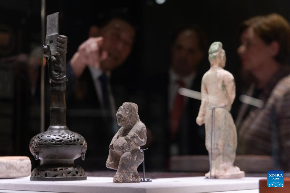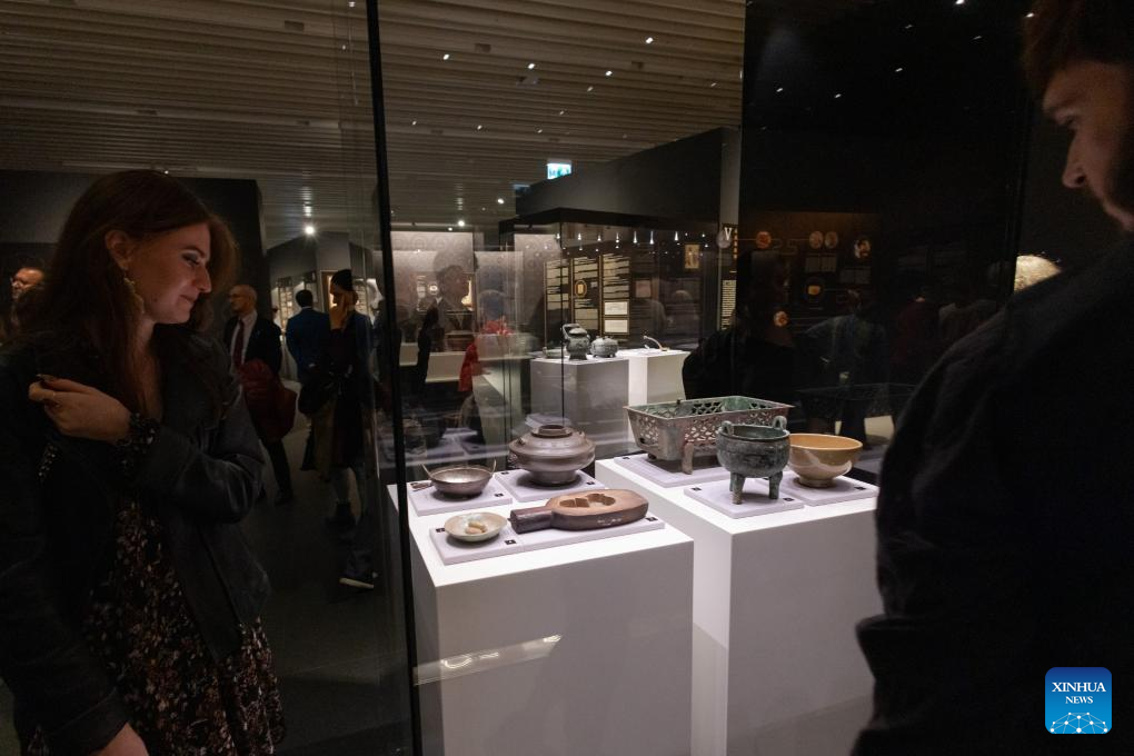 The exhibition, co-hosted with the National Museum of China, runs until Jan. 19, 2025, and features over 100 pieces of Chinese art and artifacts, providing an in-depth look at China's rich and diverse food culture, which spans millennia. (Photo by Attila Volgyi/Xinhua)