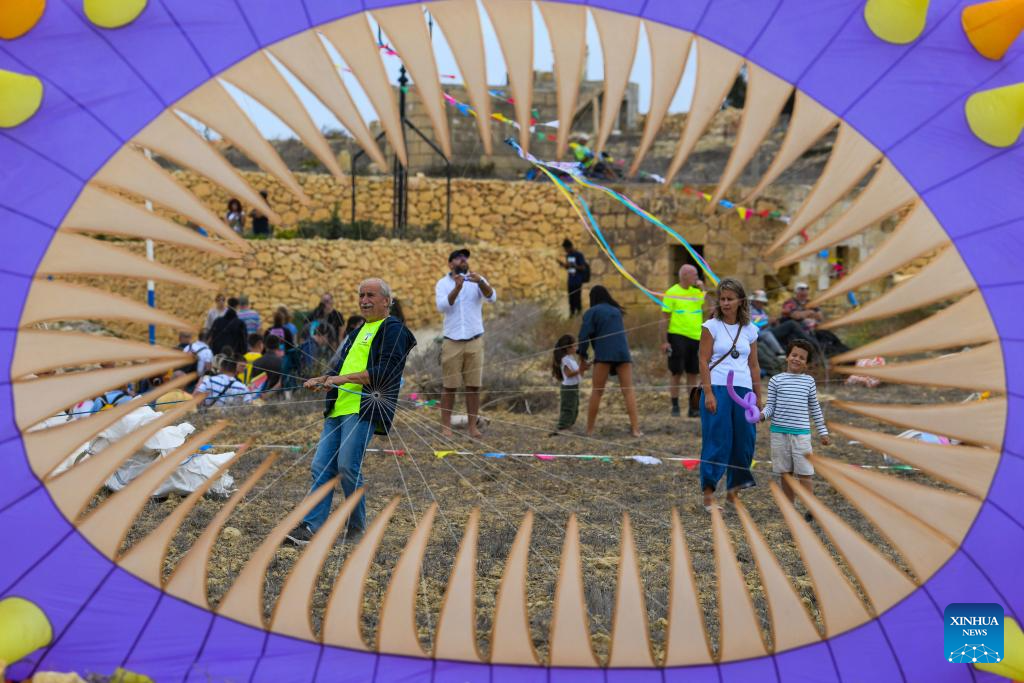People fly kites during the 7th edition of Gozo International Kite and Wind Festival in the village of Gharb on the island of Gozo, Malta, on Oct. 19, 2024.