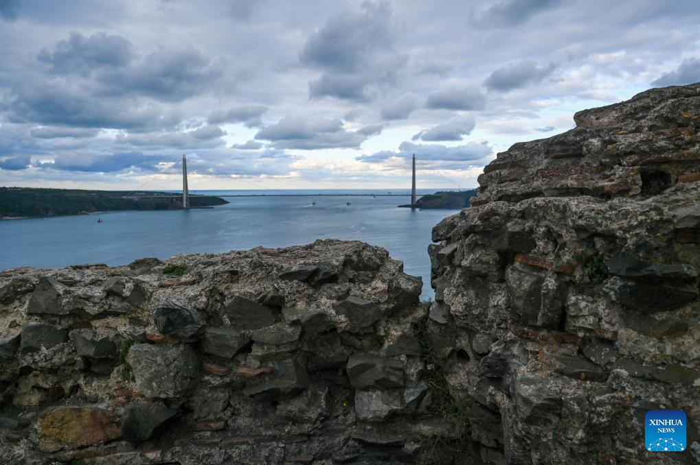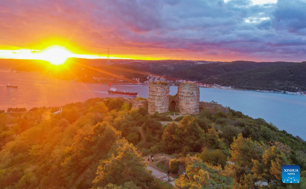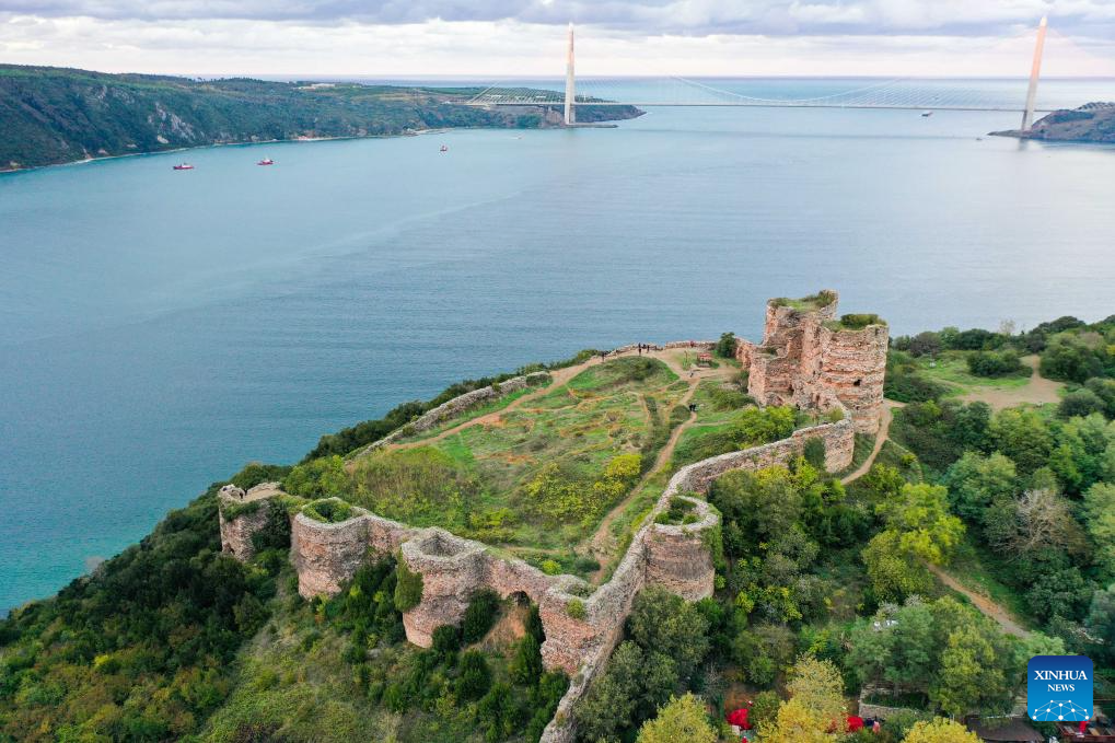 The Yoros Castle located in the Asian region of Istanbul was built during the Eastern Roman Empire and used as a military facility to guard the entrance and exit of the Bosphorus Strait on the Black Sea side. (Xinhua/Liu Lei)