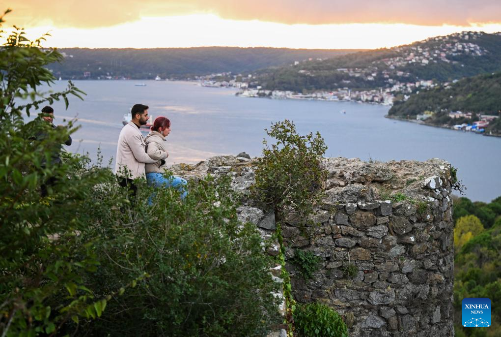 Tourists visit the ruins of the Yoros Castle in Istanbul, Türkiye, Oct. 19, 2024.