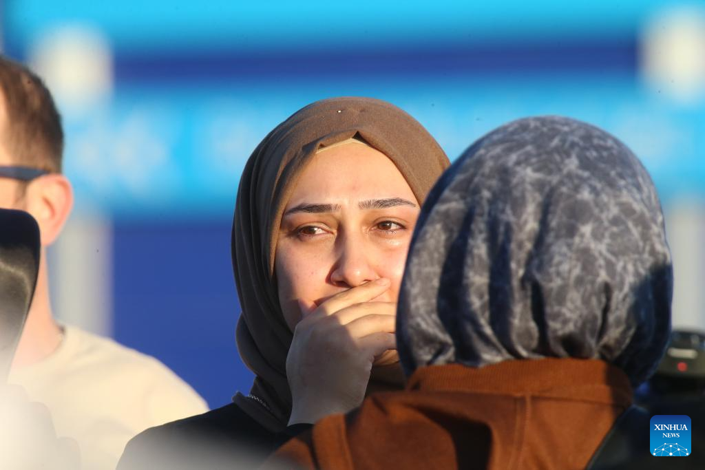 People are seen near the site of a terrorist attack at the production facility of Turkish Aerospace Industries Inc. (TUSAS) in Ankara, Türkiye, Oct. 23, 2024. Four people were killed and 14 others wounded on Wednesday in a terrorist attack at the production facility of TUSAS in Ankara, Interior Minister Ali Yerlikaya said. (Mustafa Kaya/Handout via Xinhua)
