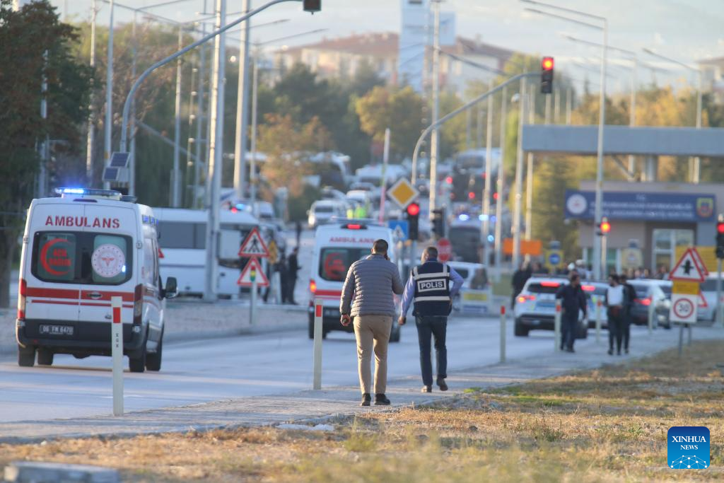 ANKARA, Oct. 23 (Xinhua) -- Four people were killed and 14 others wounded on Wednesday in a terrorist attack at the production facility of Turkish Aerospace Industries Inc. (TUSAS) in Ankara, Interior Minister Ali Yerlikaya said.