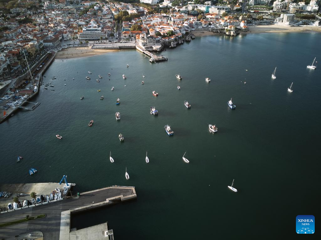 An aerial drone photo taken on Oct. 30, 2024 shows a view of a port in Cascais, Portugal. Cascais is one of the most popular tourist destinations in Portugal. (Xinhua/Meng Dingbo)