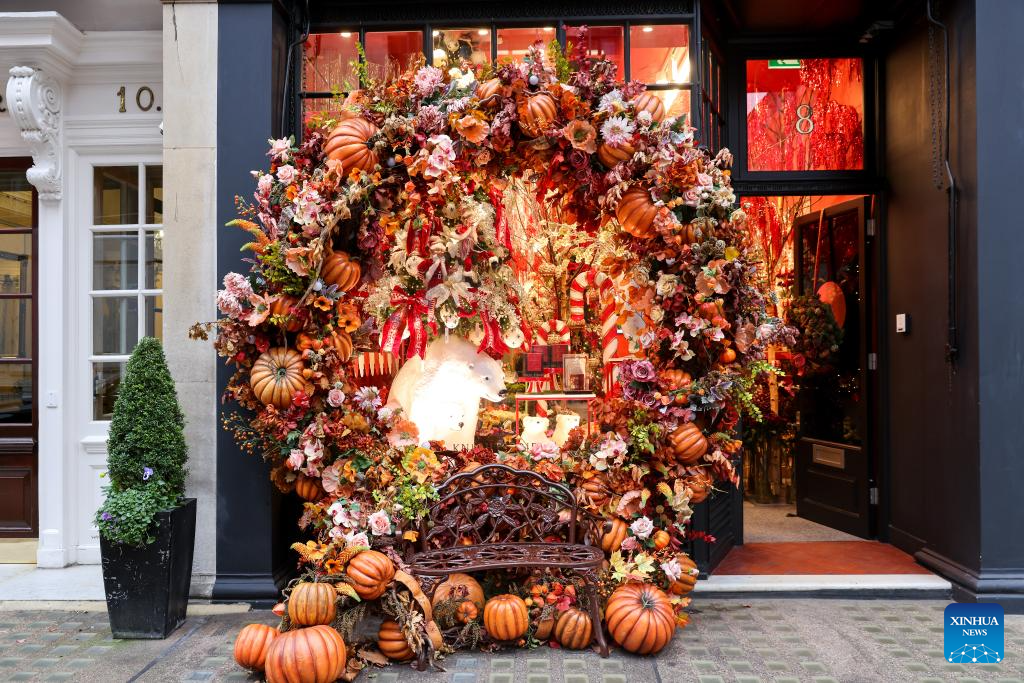 This photo taken on Oct. 31, 2024 shows Halloween decorations outside a shop in London, Britain. (Xinhua)