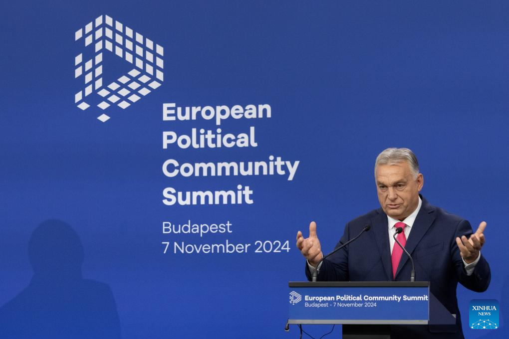 The fifth European Political Community (EPC) summit is held in Budapest, Hungary on Nov. 7, 2024. European leaders have agreed on the need for Europe to assume greater responsibility for its own security rather than relying solely on the United States, Hungarian Prime Minister Viktor Orban said Thursday following the fifth European Political Community (EPC) summit.(Xinhua/Liu Yuxuan)