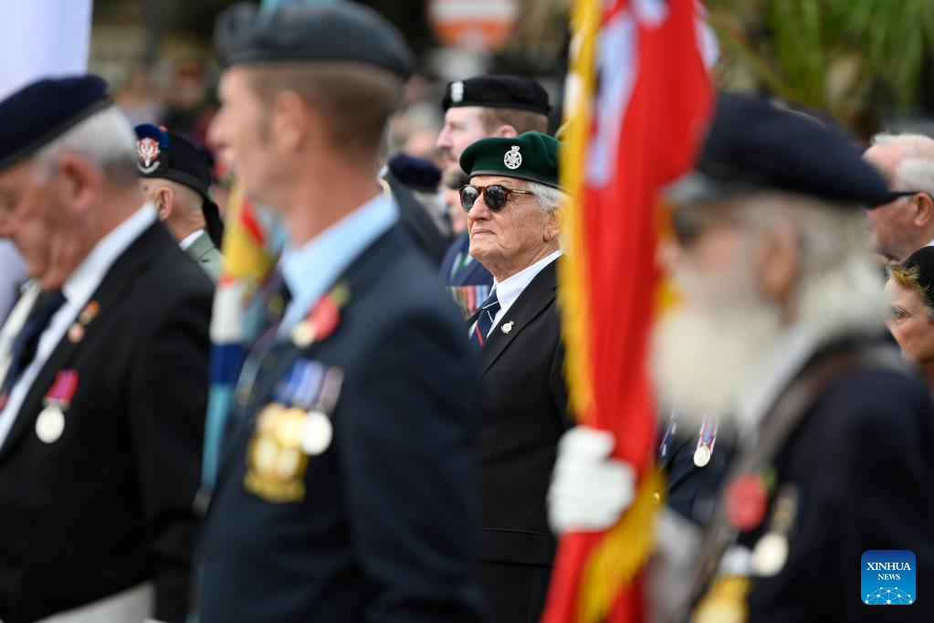 Veterans participate in the Remembrance Day ceremony in Floriana, Malta, on Nov. 10, 2024 Malta marked Remembrance Day to remember victims who sacrificed their lives during the two world wars on Sunday. (Photo by Jonathan Borg/Xinhua)