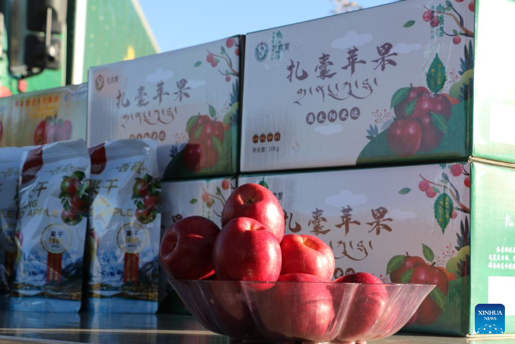 Apples from Xizang's Nyingchi City were exported to Nepal in April. These agricultural products join a growing list of Xizang's exports, which include cashmere, highland barley wine and natural drinking water sourced from the Qinghai-Xizang Plateau.
