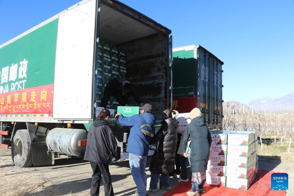 LHASA, Nov. 16 (Xinhua) -- Southwest China's Xizang Autonomous Region made a breakthrough in trade on Saturday when two vehicles carrying 30 tonnes of locally grown apples departed for Nepal from the region's Shannan City, which borders Bhutan and India.