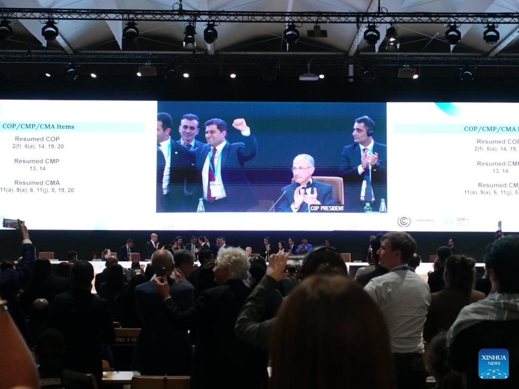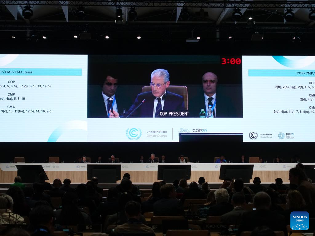 BAKU, Nov. 23 (Xinhua) -- The presidency of the 29th session of the Conference of the Parties to the United Nations Framework Convention on Climate Change (COP29) announced on Saturday that it has concluded negotiations on Article 6 of the Paris Agreement, enabling cross-border carbon trading to support global climate goals.