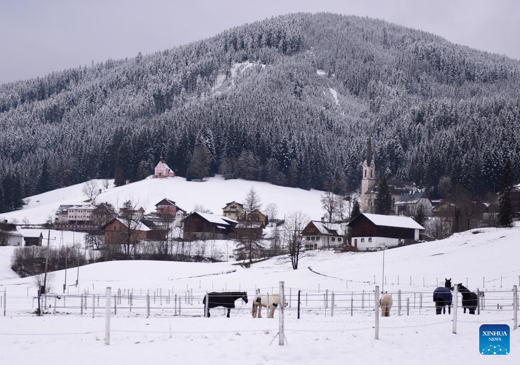 This photo taken on Dec. 11, 2024 shows a winter view of Gosau in Austria. (Xinhua/He Canling)