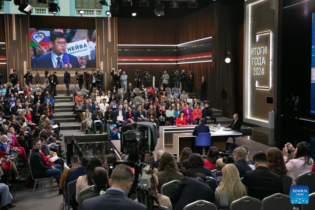 Russian President Vladimir Putin answers a question from a correspondent of Xinhua News Agency during his annual press conference in Moscow, Russia, Dec. 19, 2024. (Xinhua/Bai Xueqi)
