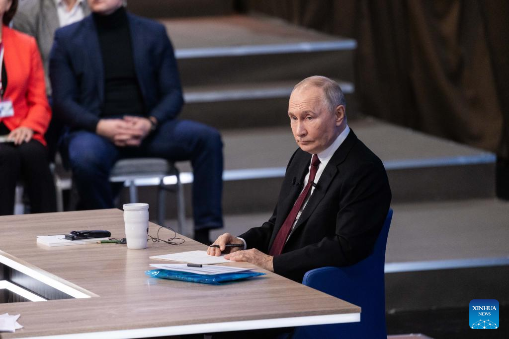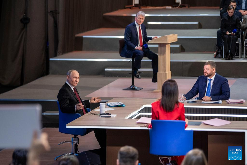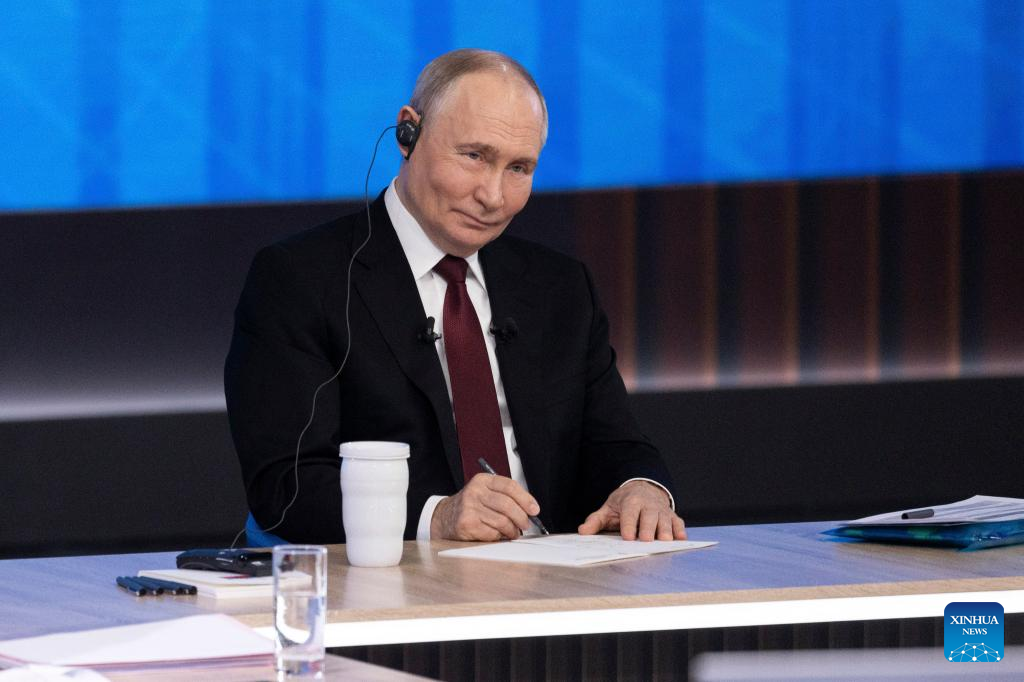Russian President Vladimir Putin attends his annual press conference in Moscow, Russia, Dec. 19, 2024. (Xinhua/Bai Xueqi)