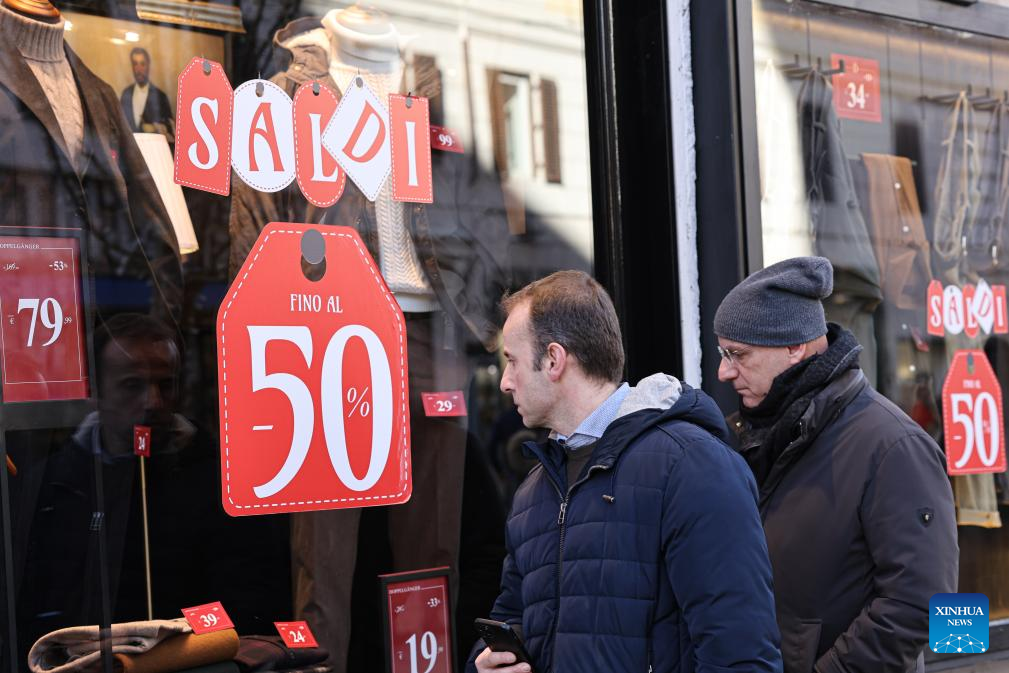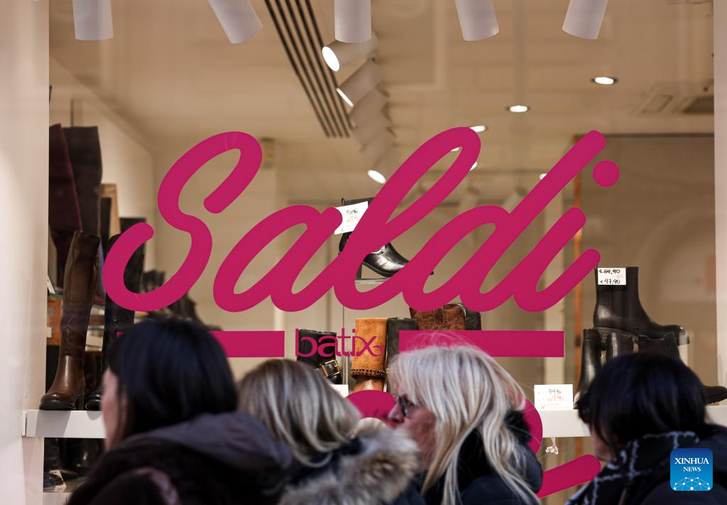 Italy's winter sale season began in most regions on Saturday. (Xinhua/Li Jing)