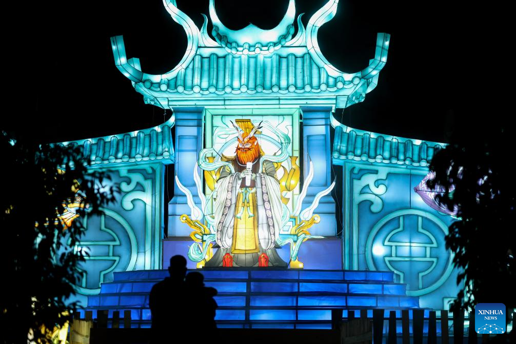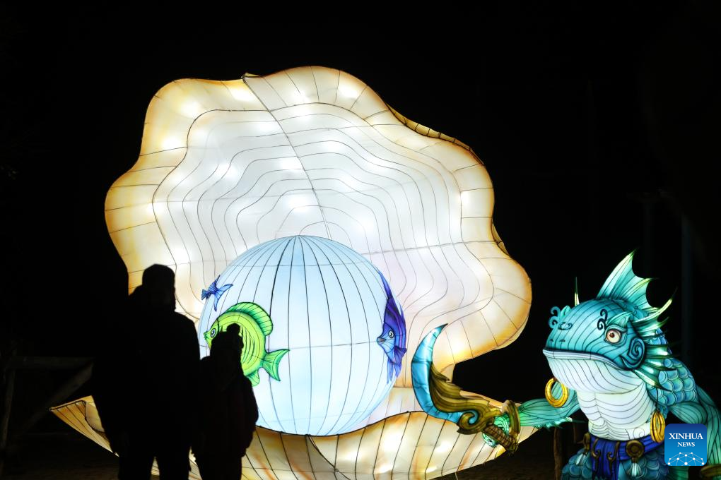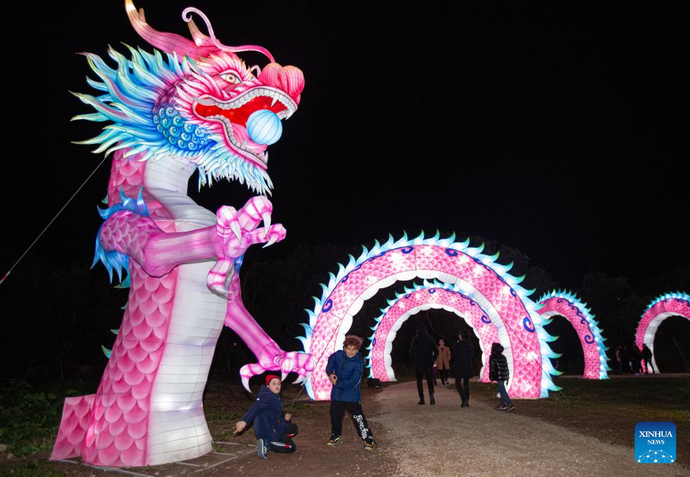 People visit a Chinese lantern exhibition at a park in Rome, Italy, Jan. 6, 2025. (Xinhua/Li Jing)