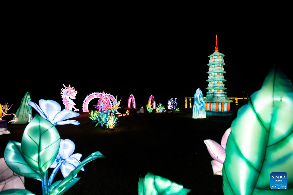 Light installations are seen during a Chinese lantern exhibition at a park in Rome, Italy, Jan. 6, 2025. (Xinhua/Li Jing)