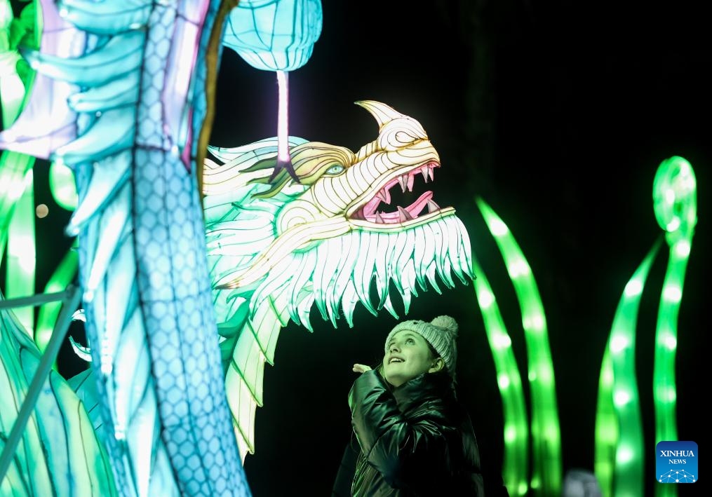 A girl visits a Chinese lantern exhibition at a park in Rome, Italy, Jan. 6, 2025. (Xinhua/Li Jing)
