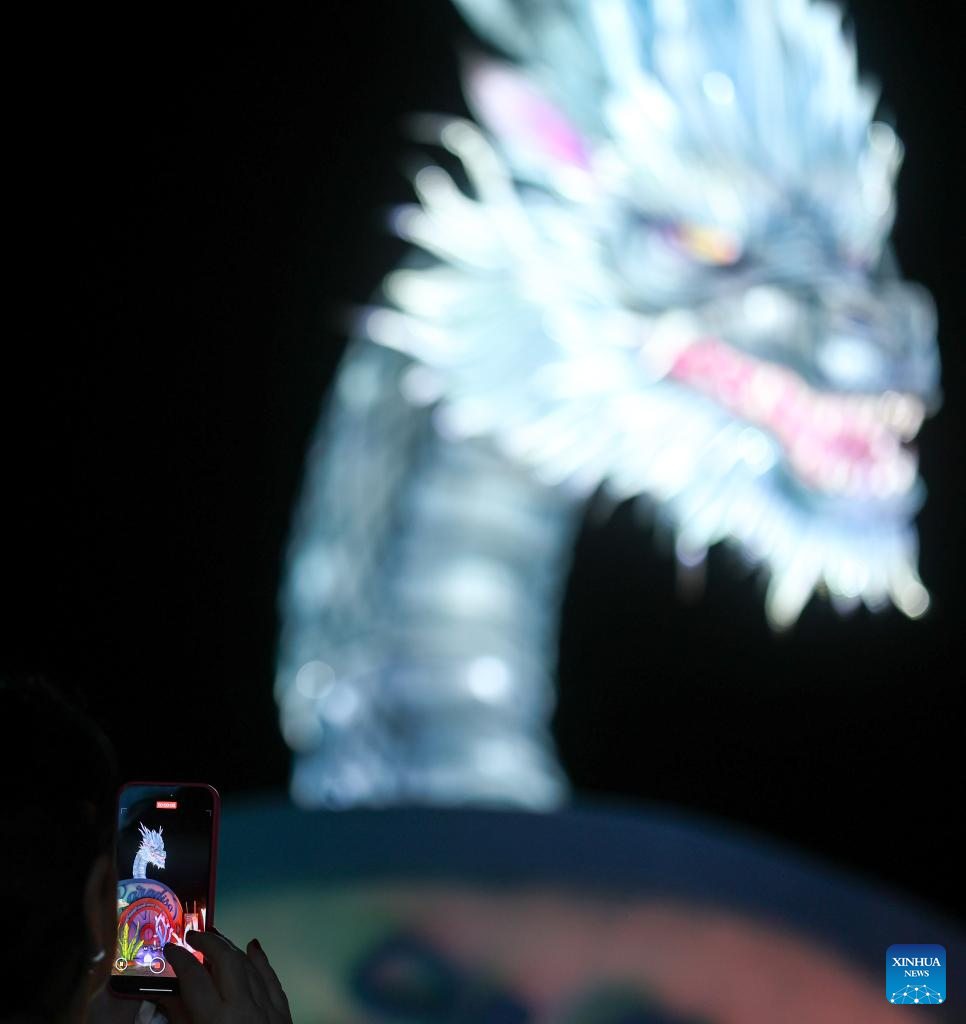 A visitor takes photos during a Chinese lantern exhibition at a park in Rome, Italy, Jan. 6, 2025. (Xinhua/Li Jing)