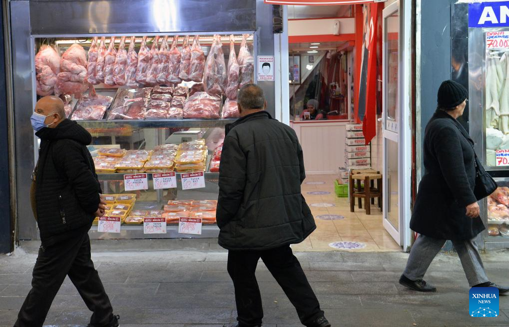 People walk past a local market in Ankara, Türkiye, on Jan. 15, 2025. Türkiye is likely to maintain its tight monetary policies and structural reforms in 2025 following years of economic challenges marked by high inflation and currency volatility, Turkish economists said, expressing cautious optimism about the country's economic outlook. (Mustafa Kaya/Handout via Xinhua)