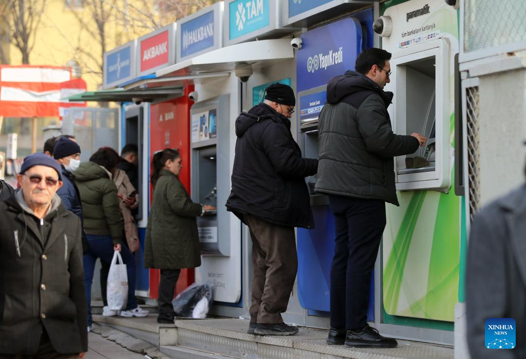 People withdraw money from ATMs in Ankara, Türkiye, on Jan. 15, 2025. Türkiye is likely to maintain its tight monetary policies and structural reforms in 2025 following years of economic challenges marked by high inflation and currency volatility, Turkish economists said, expressing cautious optimism about the country's economic outlook. (Mustafa Kaya/Handout via Xinhua)