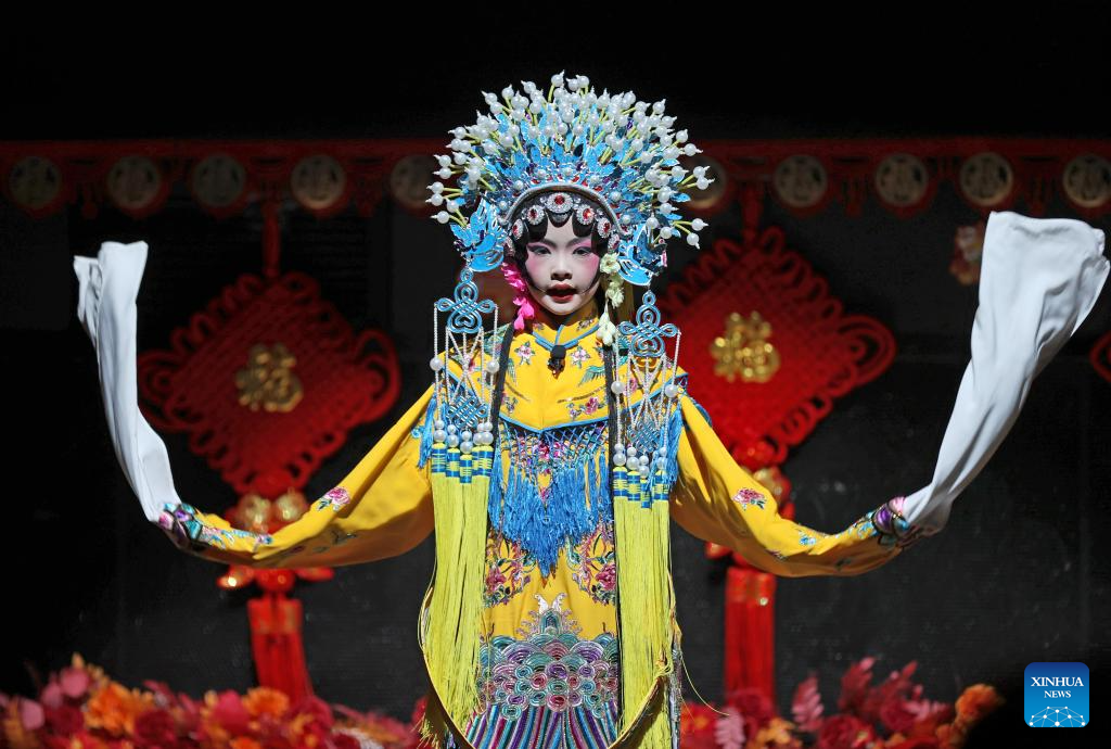 A girl performs Peking Opera during Chinese Students and Scholars Association UK (CSSAUK) Chinese New Year Gala in London, Britain, Jan. 21, 2025. The Chinese New Year falls on Jan. 29 this year, kicking off the upcoming Year of the Snake. (Xinhua/Li Ying)