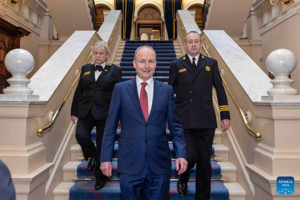 Fianna Fail leader Micheal Martin leaves Leinster House, the Irish parliament building, in Dublin, Ireland, on Jan. 23, 2025. (The Houses of the Oireachtas/Handout via Xinhua)