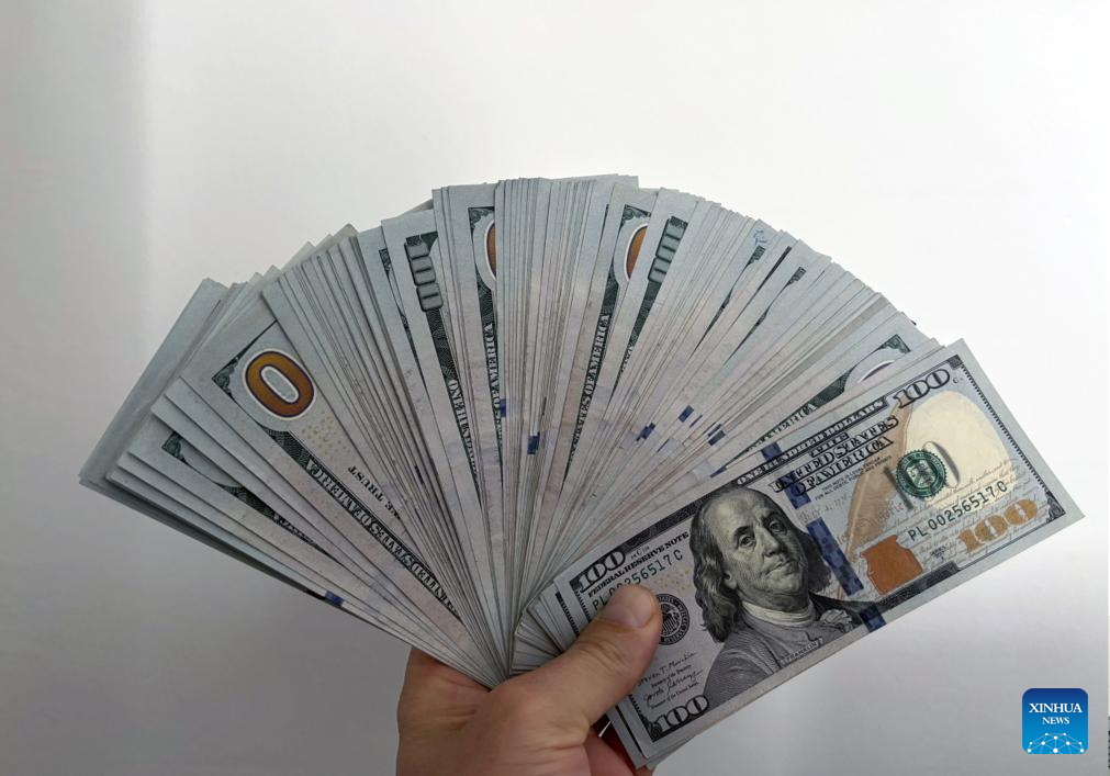 A teller shows banknotes at an exchange office in Ankara, Türkiye, on Jan. 23, 2025. (Mustafa Kaya/Handout via Xinhua)