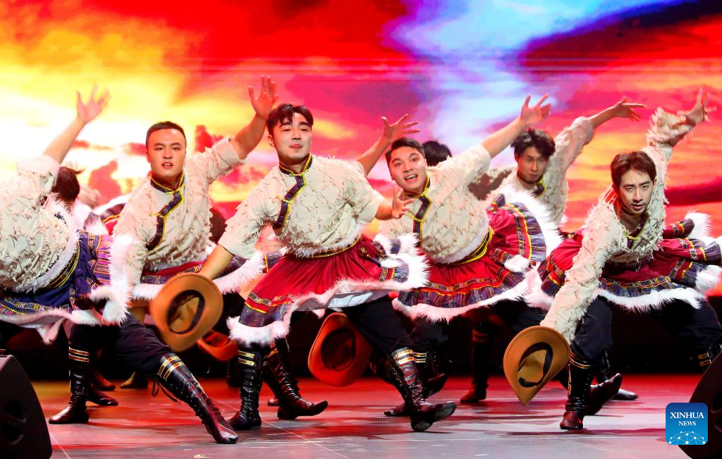 Belarusian students perform during a gala held to greet the upcoming Spring Festival, or Chinese New Year, in Minsk, Belarus, Jan. 20, 2025. (Photo by Henadz Zhinkov/Xinhua)