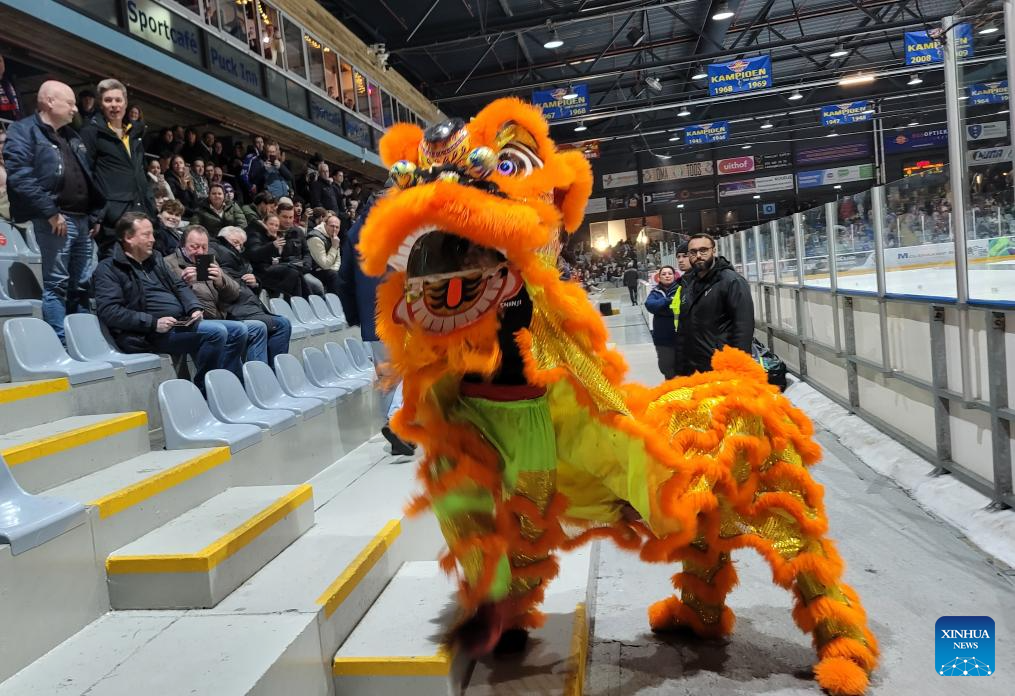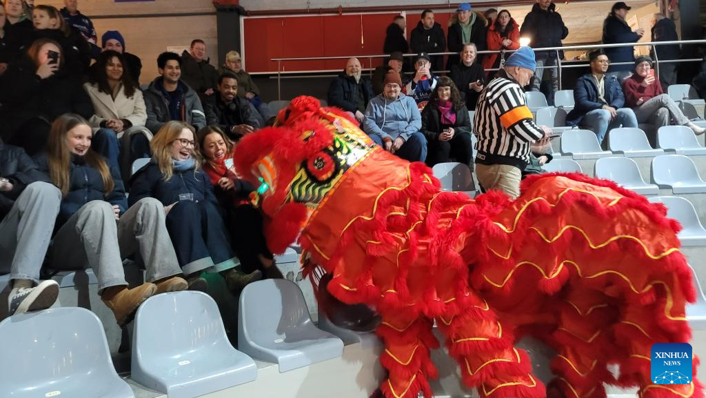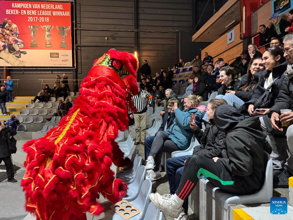 THE HAGUE, Jan. 25 (Xinhua) -- The resounding clash of gongs and drums echoed through The Hague's ice hockey arena on Friday night as a vibrant lion dance captivated Dutch spectators during the "Happy Spring Festival" celebration.