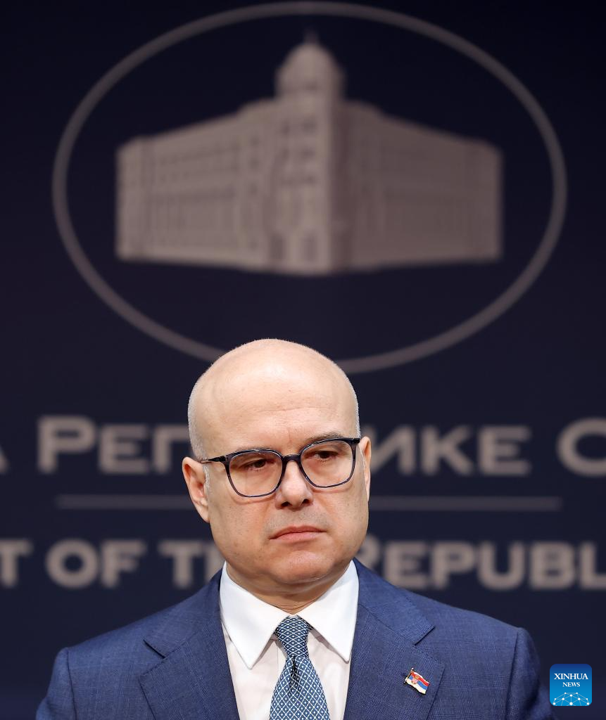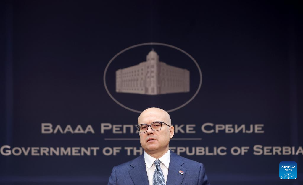 BELGRADE, Jan. 28 (Xinhua) -- Serbian Prime Minister Milos Vucevic announced resignation on Tuesday during an extraordinary press conference at the government building in Belgrade, citing "elevated tensions" caused by a collapse at Novi Sad railway station in November last year, which claimed 15 lives.