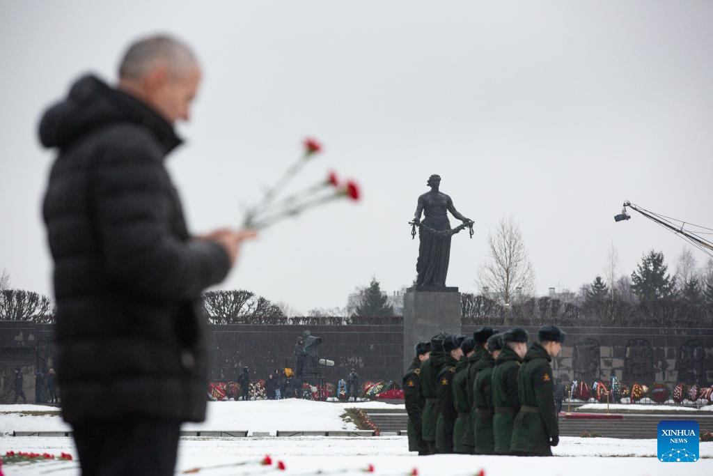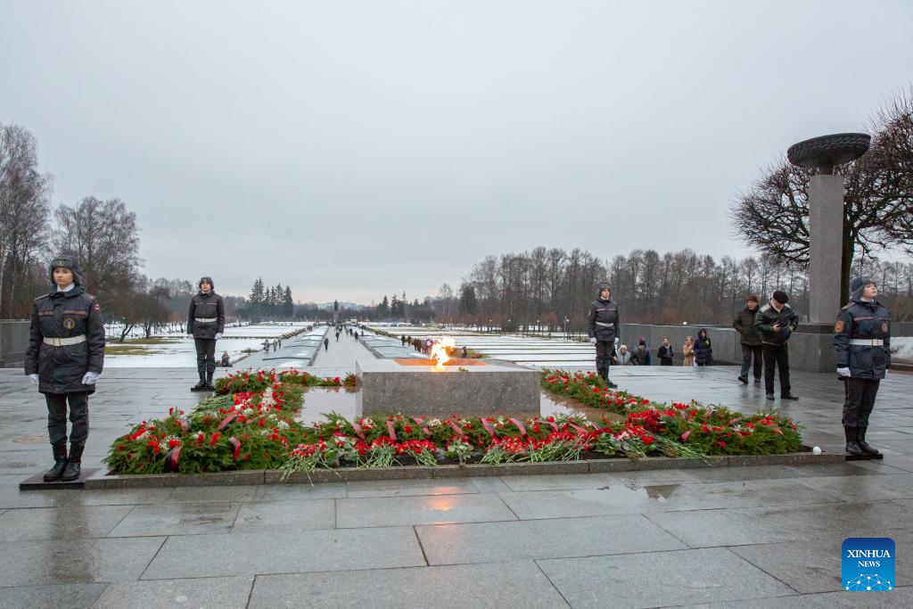 ST. PETERSBURG, Jan. 27 (Xinhua) -- Russia's St. Petersburg commemorated the 81st anniversary of the lifting of the Siege of Leningrad on Monday with a series of solemn events, including flower-laying ceremonies, thematic exhibitions, and candlelight vigils.
