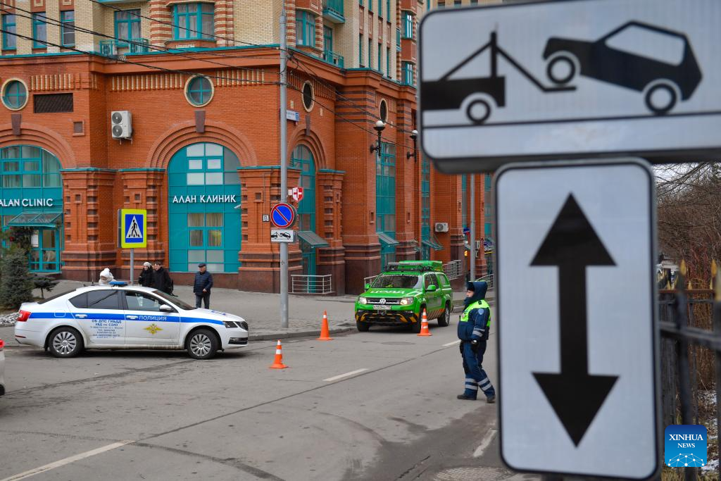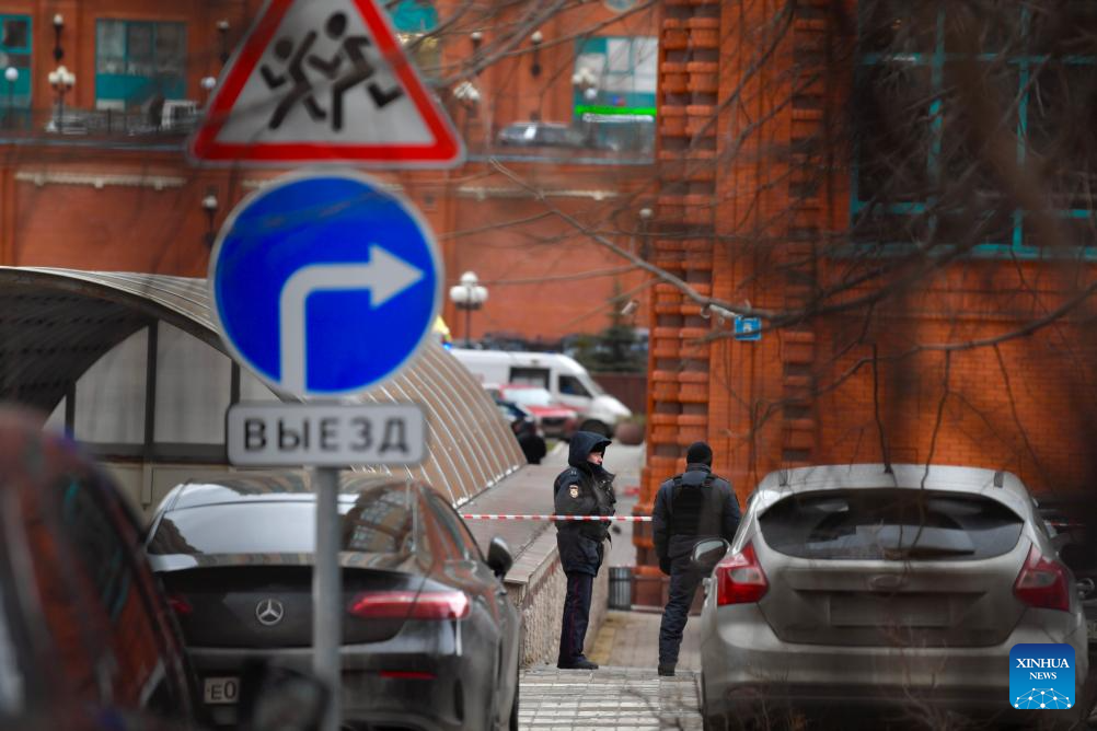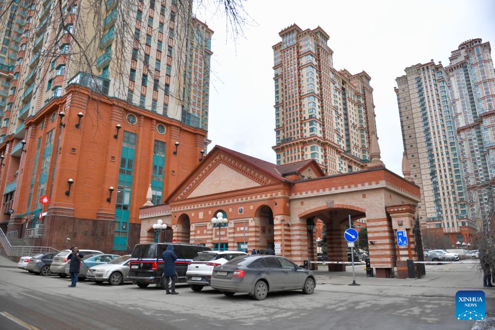 Police cordon off a residential building where an explosion occurred in Moscow, Russia, Feb. 3, 2025. One person was killed and four others injured in an explosion in a residential building in northwestern Moscow, local emergency services said Monday. (Photo by Alexander Zemlianichenko Jr/Xinhua)