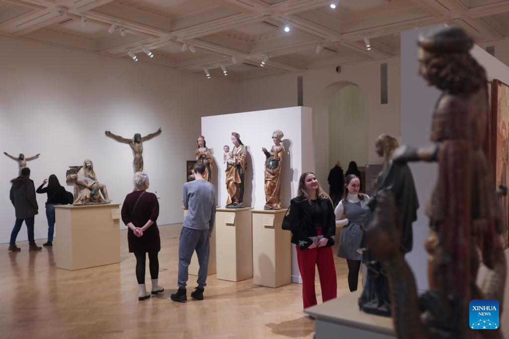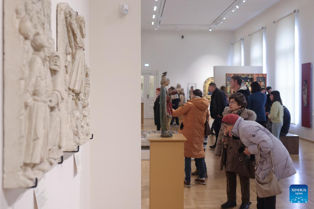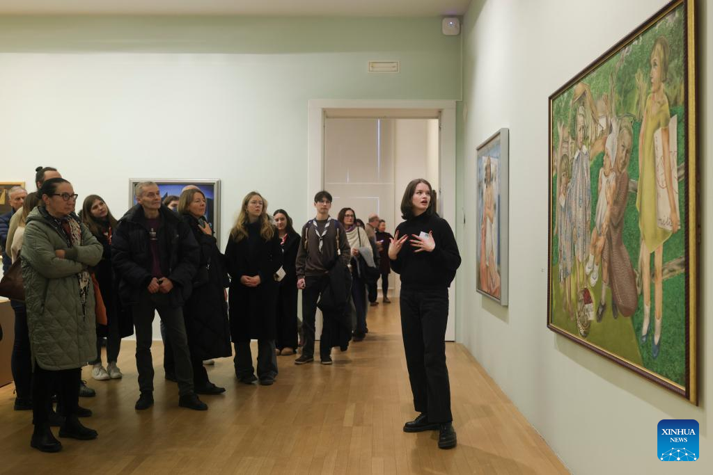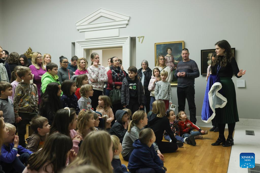 People view the National Gallery's art collection in Ljubljana, Slovenia, Feb. 8, 2025. Events were held on Saturday as Slovenia celebrated its Culture Day, a public holiday in memory of its poet France Preseren. (Photo by Zeljko Stevanic/Xinhua)
