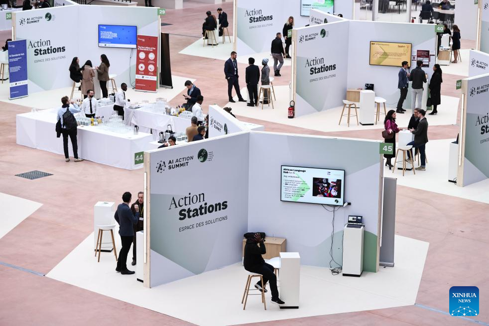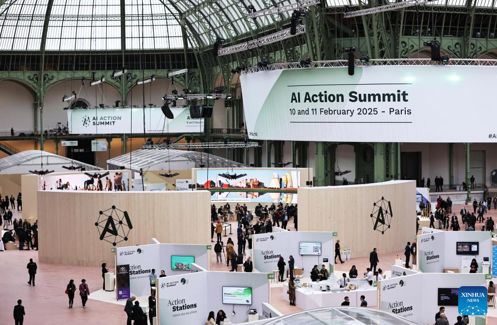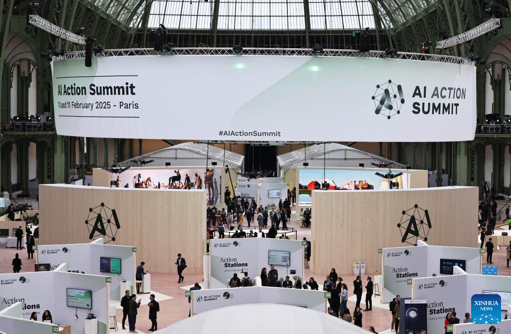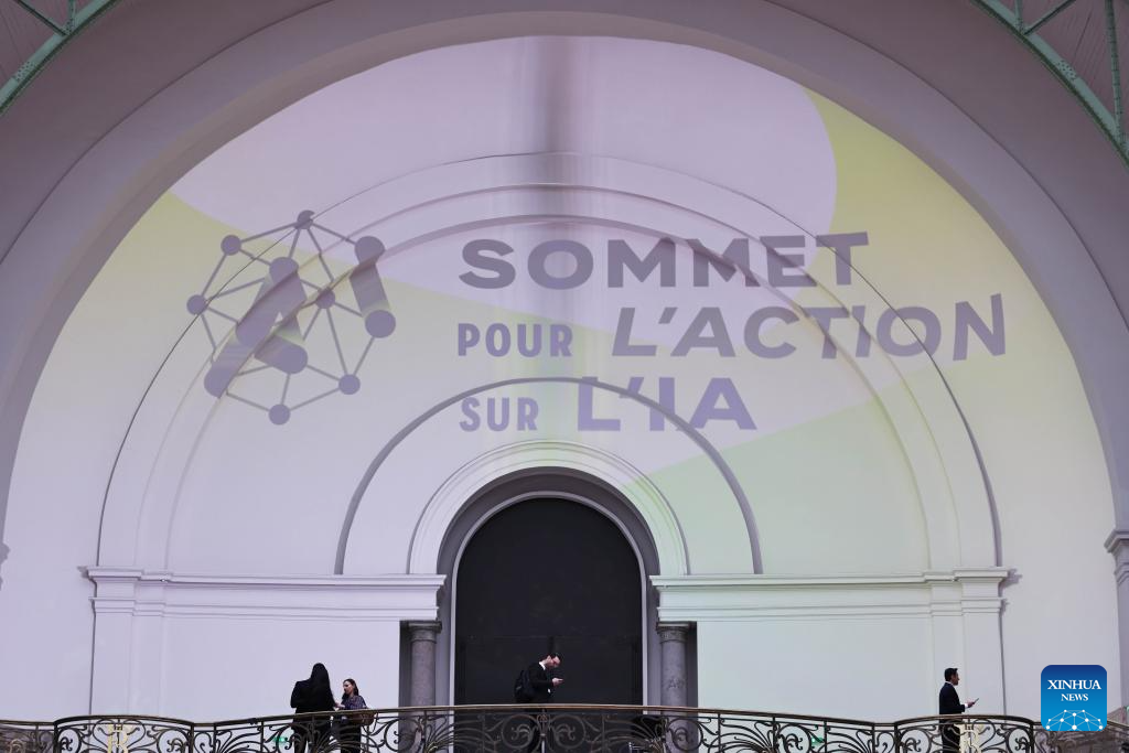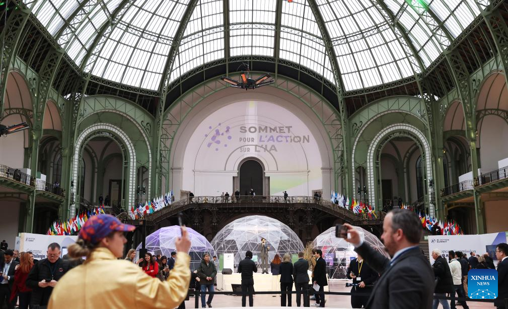 This photo taken on Feb. 10, 2025 shows the venue of the AI Action Summit held at the Grand Palais in Paris, France. The summit, which falls on Feb. 10 and 11, focuses on five major themes: Public Interest AI, Future of Work, Innovation and Culture, Trust in AI, and Global AI Governance. (Xinhua/Gao Jing)