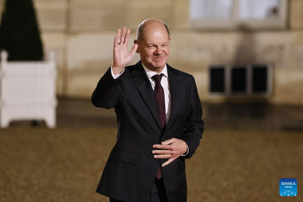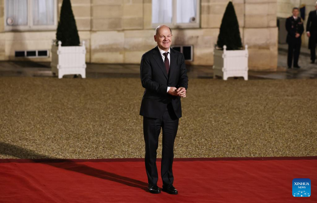 German Chancellor Olaf Scholz arrives to attend a dinner on the sidelines of the Artificial Intelligence (AI) Action Summit at the presidential Elysee palace in Paris, France, on Feb. 10, 2025.