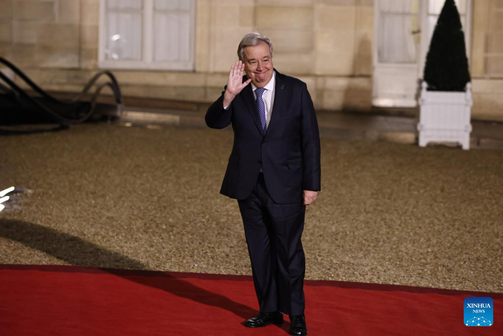 UN Secretary-General Antonio Guterres arrives to attend a dinner on the sidelines of the Artificial Intelligence (AI) Action Summit at the presidential Elysee palace in Paris, France, on Feb. 10, 2025.