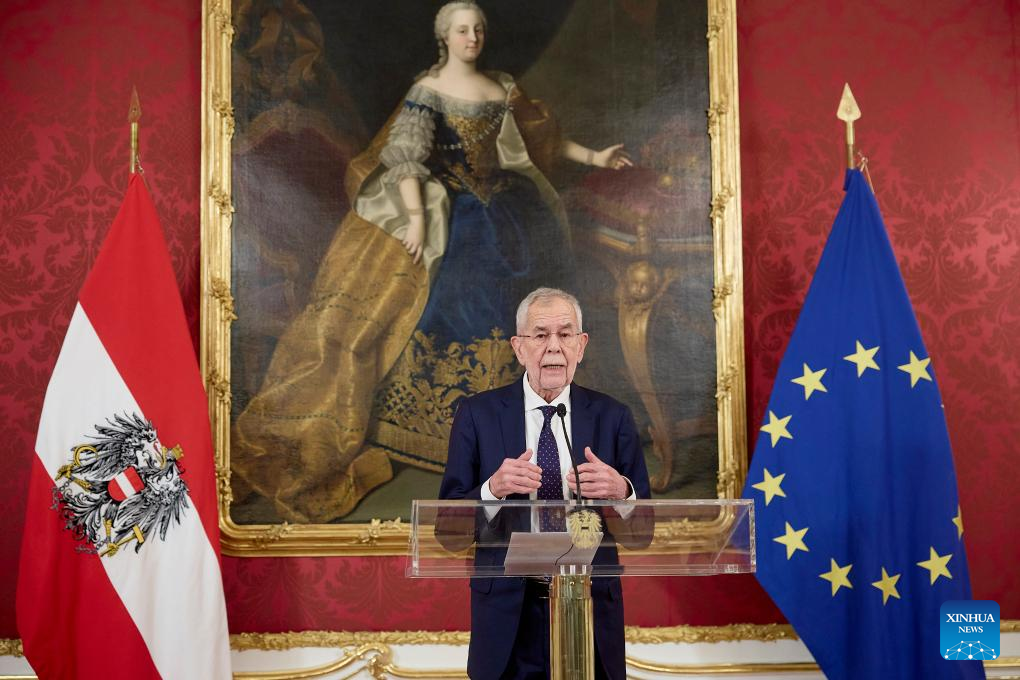 Austrian President Alexander Van der Bellen delivers a speech in Vienna, Austria, Feb. 12, 2025. Efforts to form a coalition government in Austria collapsed on Wednesday after negotiations between the far-right Freedom Party and the conservative People's Party broke down.