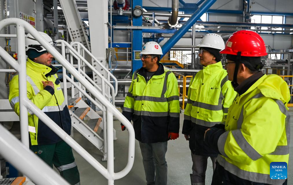 Chinese and Turkish staff members communicate at the site of the Tuz Lake underground natural gas storage expansion project in Aksaray province, Türkiye, Feb. 12, 2025. The core part of the expansion project, undertaken by China CAMC Engineering Co., Ltd., a subsidiary of China National Machinery Industry Corporation, has achieved mechanical completion recently. The expansion project officially kicked off in 2020, aiming to enhance Türkiye's clean energy infrastructure and contribute to its economic growth. (Xinhua/Liu Lei)
