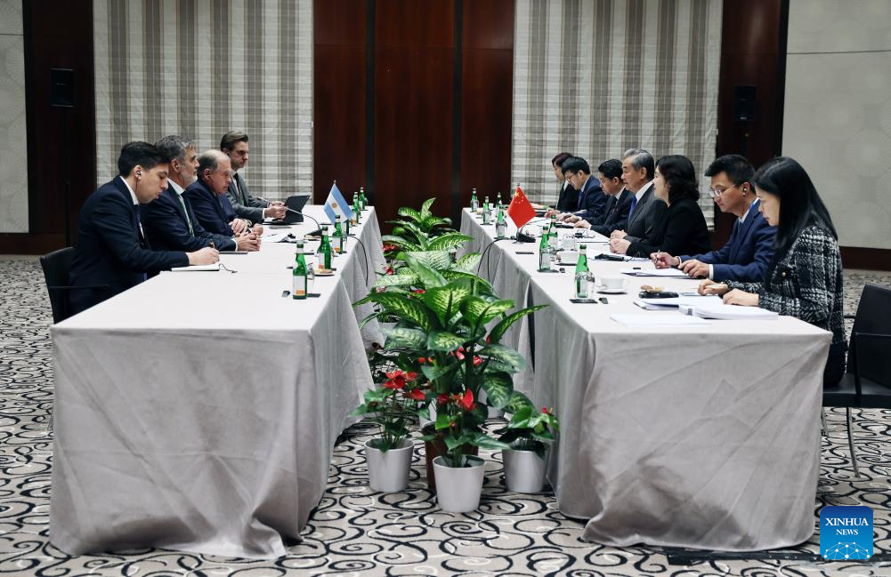 MUNICH, Germany, Feb. 15 (Xinhua) -- China is ready to work with Argentina to strengthen high-level exchanges and interactions in various fields to promote bilateral relations to a new level and better benefit the two peoples, Chinese Foreign Minister Wang Yi said here on Friday.