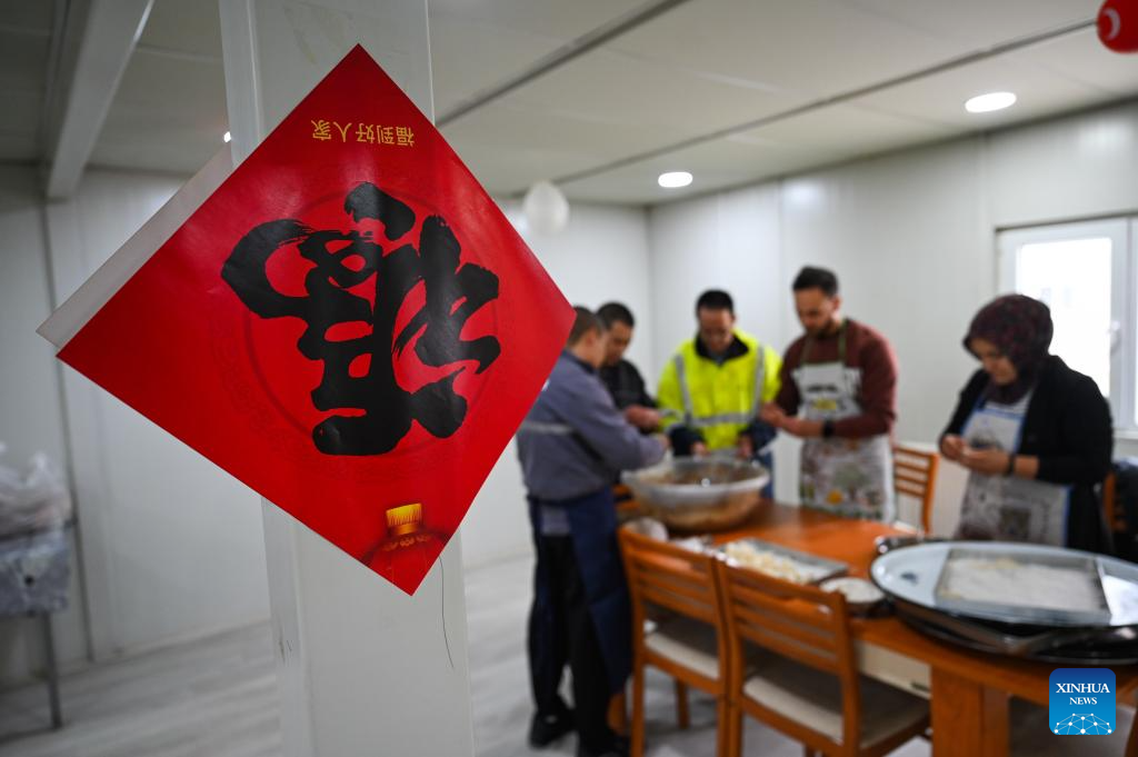 Chinese and Turkish employees make dumplings together at the site of the Tuz Lake underground natural gas storage expansion project, in Aksaray province, Türkiye, on the Lantern Festival, Feb. 12, 2025. The Tuz Lake underground natural gas storage expansion project is located on the Anatolian Plateau in Aksaray Province, a central province in Türkiye, with cold and snowy winters and hot and dry summers. Chinese constructors have been working here for many years, building the natural gas storage expansion project in an effort to boost Türkiye's green and low-carbon transformation.(Xinhua/Liu Lei)