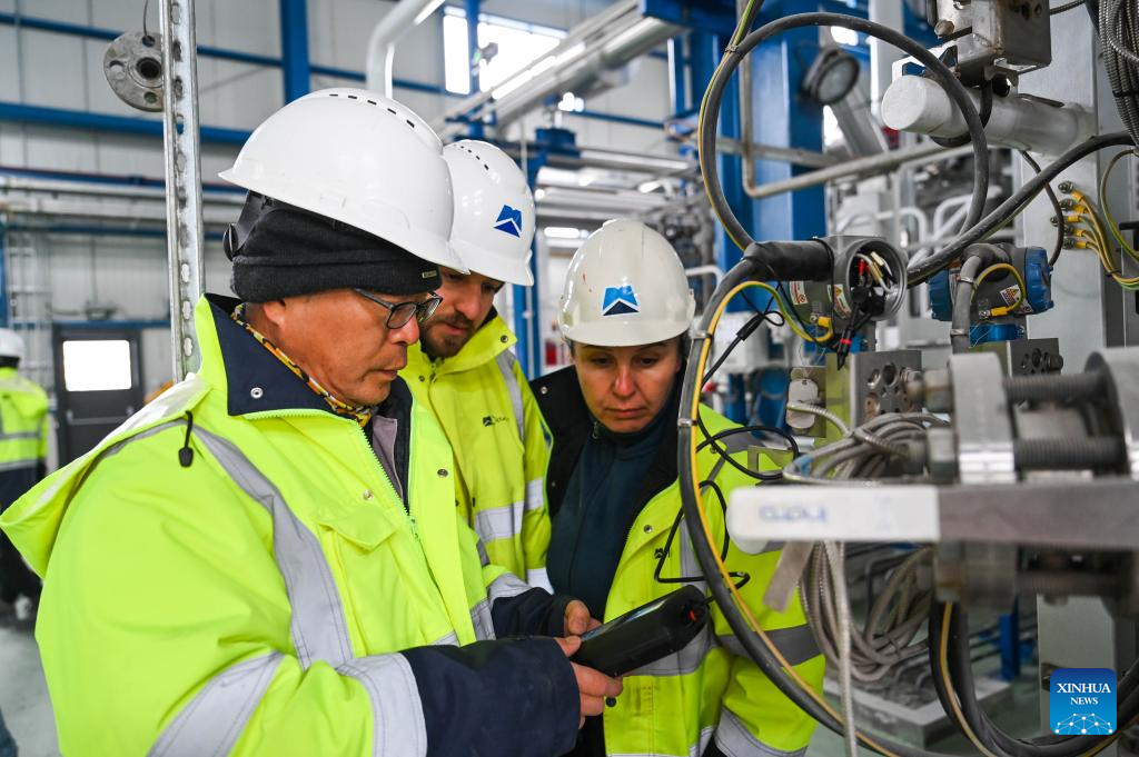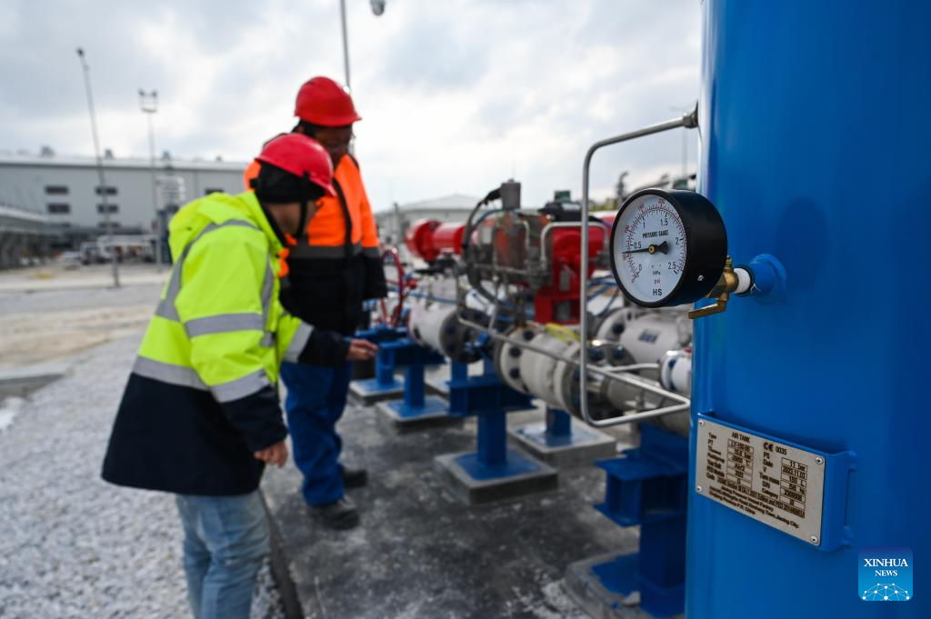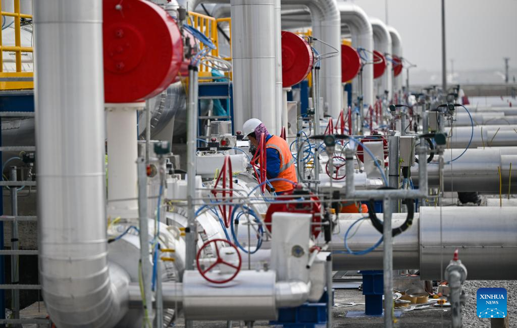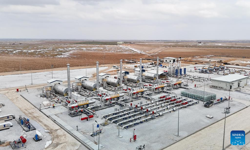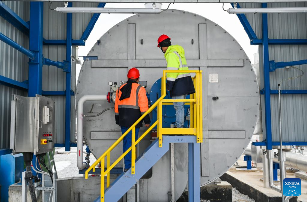 Chinese employees check the ground station facilities of the Tuz Lake underground natural gas storage expansion project, in Aksaray province, Türkiye, Feb. 12, 2025. The Tuz Lake underground natural gas storage expansion project is located on the Anatolian Plateau in Aksaray Province, a central province in Türkiye, with cold and snowy winters and hot and dry summers. Chinese constructors have been working here for many years, building the natural gas storage expansion project in an effort to boost Türkiye's green and low-carbon transformation.
