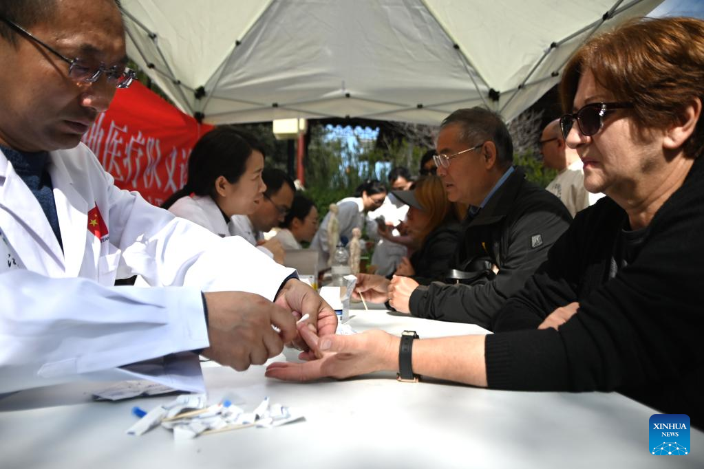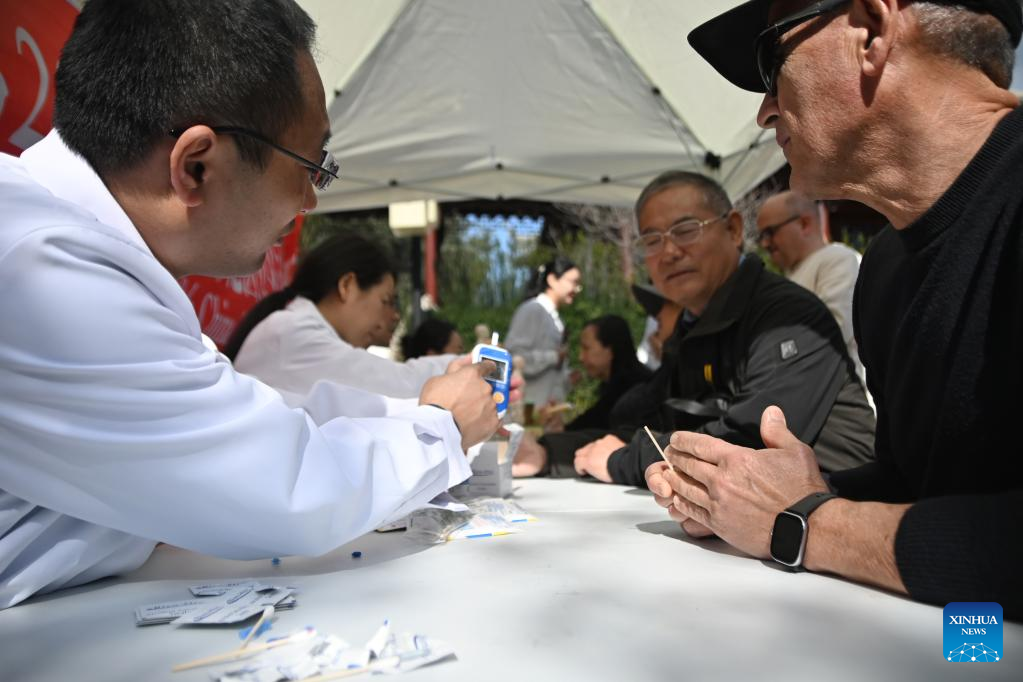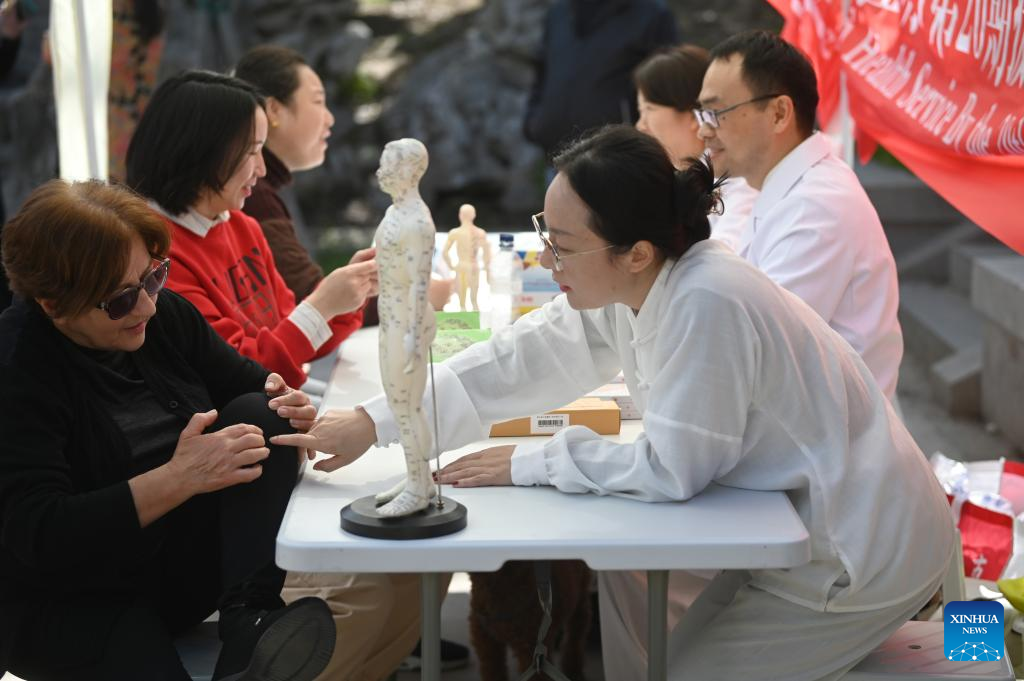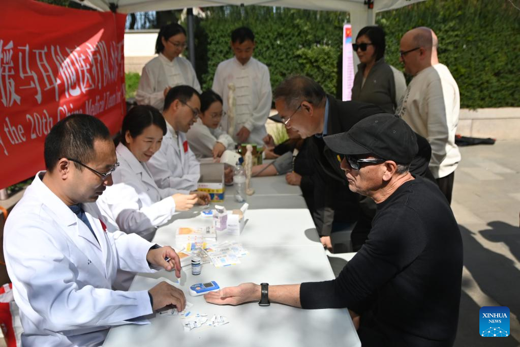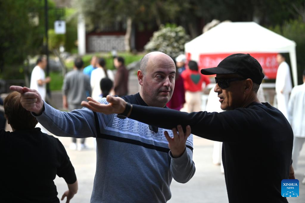 Co-hosted by the 20th Chinese medical team for Malta from the Mediterranean Regional Centre for Traditional Chinese Medicine (MRCTCM) and the Chinese Community Association in Malta, the event includes Tai Chi classes and free clinic services provided by the Chinese medical team. (Photo by Jonathan Borg/Xinhua)
