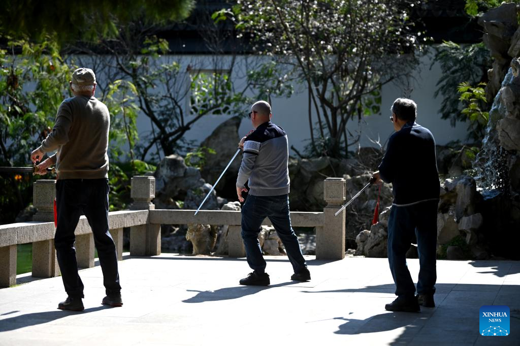 VALLETTA, Feb. 23 (Xinhua) -- A Tai Chi training program was launched on Sunday at the Chinese Garden of Serenity in Santa Lucija, southern Malta, attracting many local Tai Chi enthusiasts to participate in this vibrant cultural exchange event.