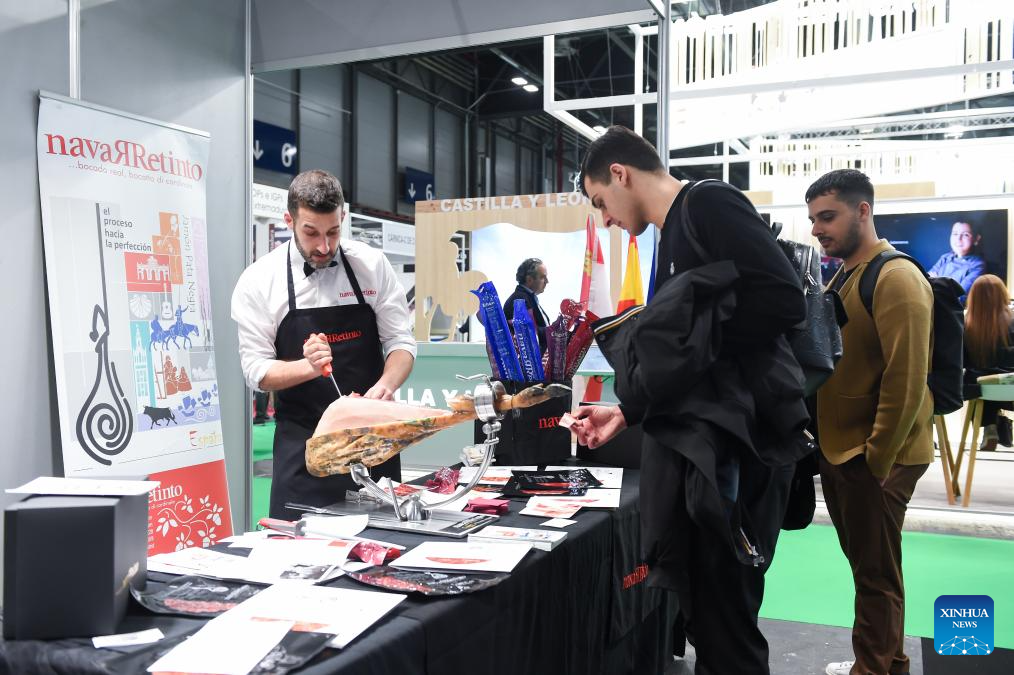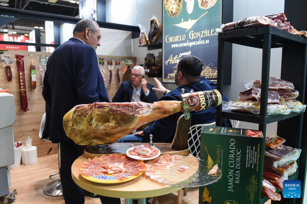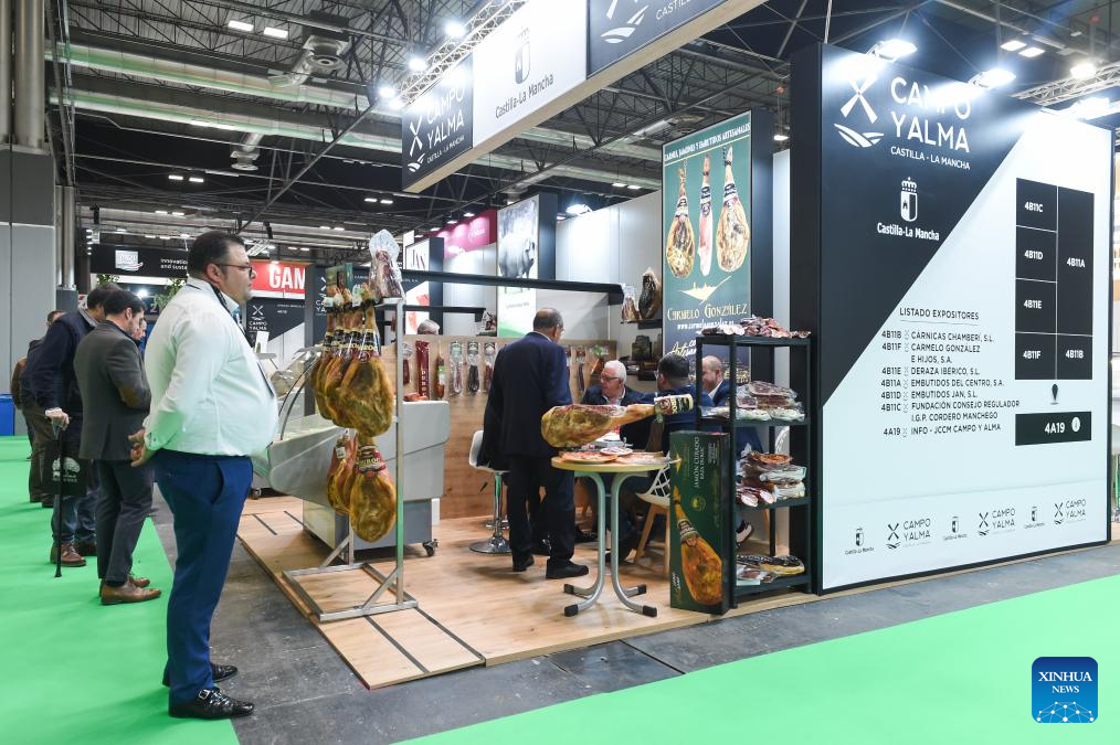People visit the Meat Attraction in Madrid, Spain, Feb. 25, 2025. The Meat Attraction, an exhibition of meat products held here from Feb. 25 to 27, has attracted nearly 300 exhibitors. (Photo by Gustavo Valiente/Xinhua)