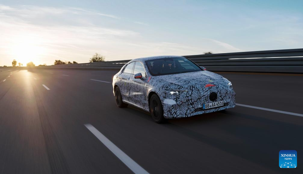 This undated file photo shows a Mercedes-Benz's all-electric CLA driving on the Nardo test track in southern Italy. (Xinhua)
