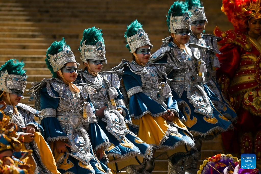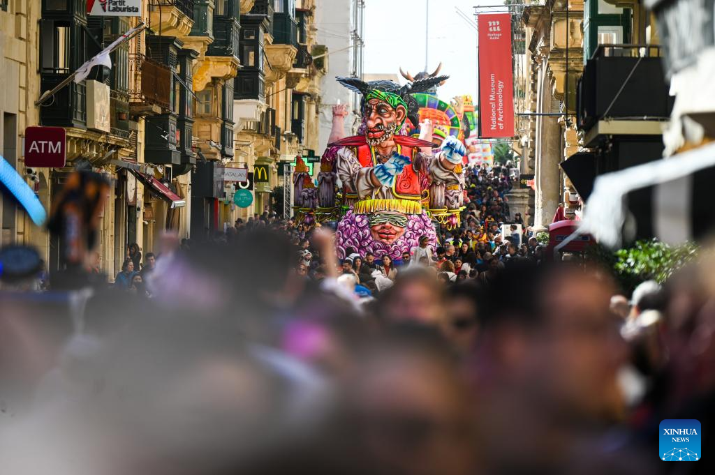 The historic city of Valletta has become a colorful and musical heaven with marching bands, street performers and dancers as Malta celebrates the carnival from Feb. 28 to March 4. (Photo by Jonathan Borg/Xinhua)
