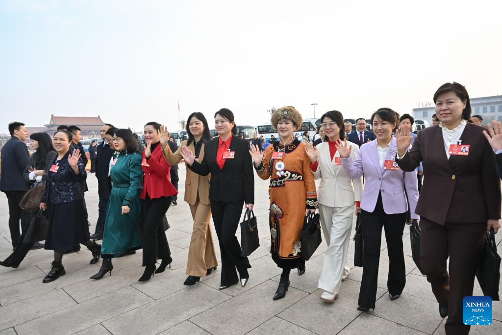 Deputies to the 14th National People's Congress (NPC) walk towards the Great Hall of the People for the opening meeting of the third session of the 14th NPC in Beijing, capital of China, March 5, 2025.