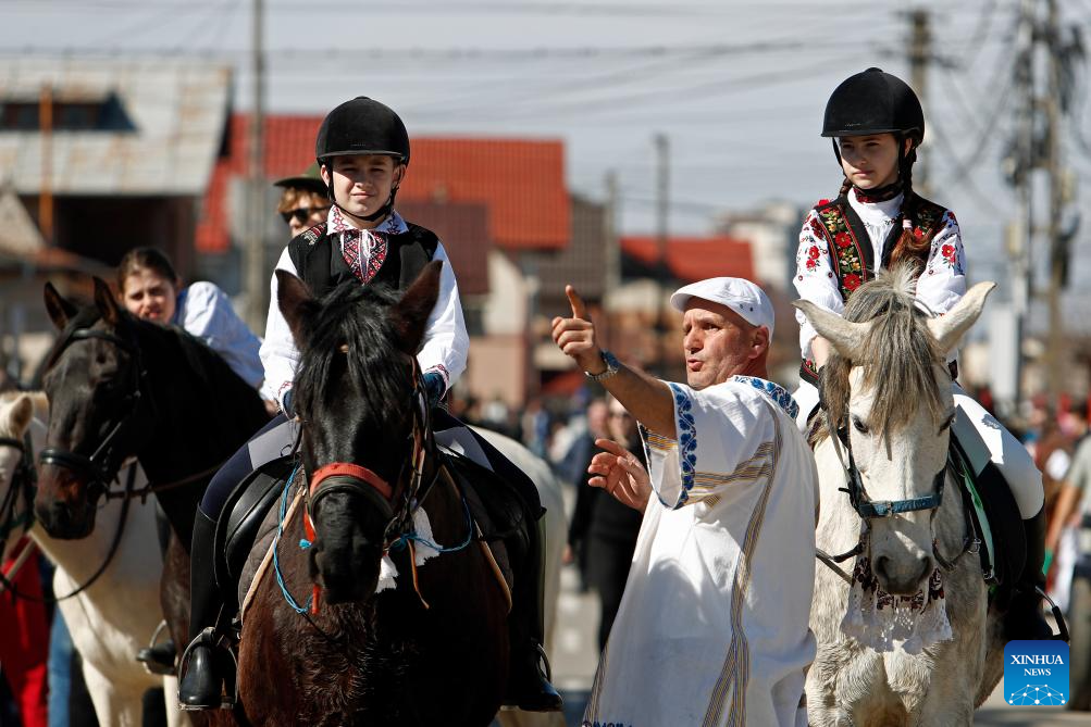 Children ride their horses for a caballine beauty contest during the celebration of the traditional "Tudorita" holiday, also known as the Easter of Horses, in Targoviste, Romania, March 8, 2025. Easter of Horses is celebrated by the local Bulgarian community and symbolizes the start of agricultural work in the new year. (Photo by Cristian Cristel/Xinhua)